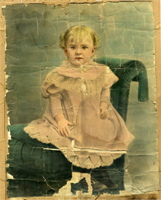 C'est Rosa, mon arrière-grand-mère du côté maternel. La toile date de 1989 et a été peinte à partir d'une photo. Un infographiste a tenté de teinter la photo au couleurs de la toile, mais ça a été un fiasco!